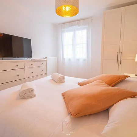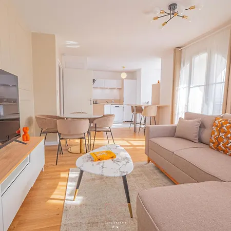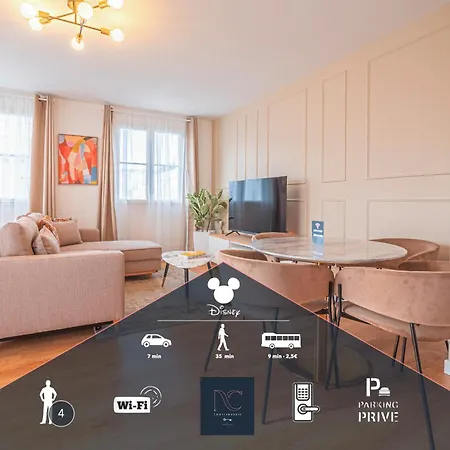 Das *Disneyland-Paris* 4 Pers, Wifi, Parking bietet seinen Gästen einen Balkon und einen Ankleidebereich, die mit einem Sofa und modernen Annehmlichkeiten wie einem Flachbildfernseher mit Satellitenkanälen ausgestattet sind. Zu den Sicherheitseinrichtungen im Zimmer gehören Rauchmelder. Für zusätzlichen Komfort im Apartment sorgen eine Badewanne. Badelaken sind ebenfalls vorhanden.
